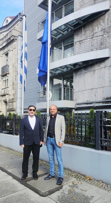 Eine Delegation der Jesidische Kultur und Gemeinschaft Berlin e.V. stattete der Botschaft der Hellenischen Republik in der Hauptstadt Berlin einen offiziellen Besuch ab. Im Rahmen dieses Treffens überreichte die Delegation ein umfassend dokumentiertes Dossier mit Informationen und Belegen über den Völkermord, dem das jesidische Volk am 3. August 2014 ausgesetzt war.